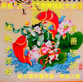 黑龙江省哈尔滨市通河县一学法小组恭贺法轮大法日!