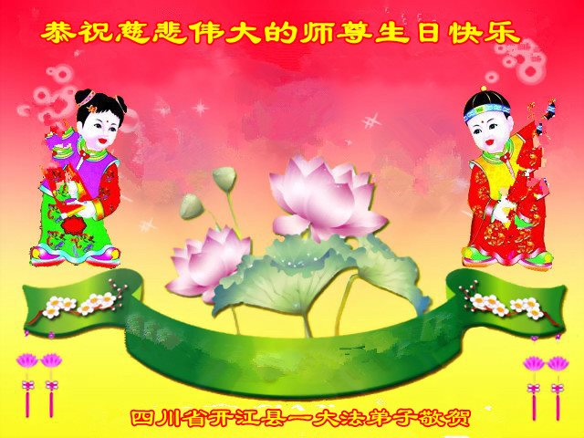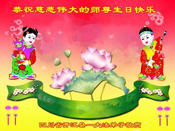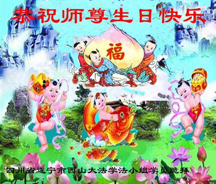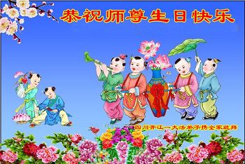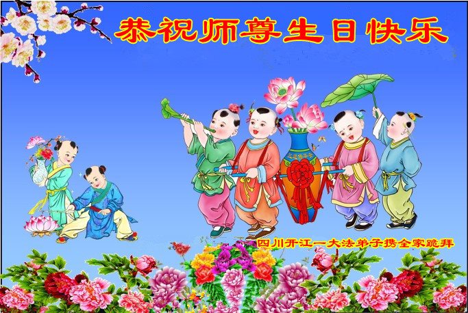 四川大法弟子文珍、仙仙、华华、景景祝伟大慈悲的师尊生日快乐!