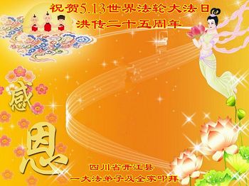 四川省达州市开江县一大法弟子及全家祝贺5.13世界法轮大法日洪传二十五周年!
