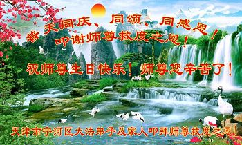 天津市宁河区大法弟子学法小组恭贺大法日祝师尊生日快乐!