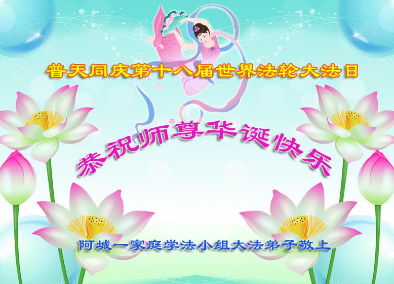 庆祝世界法轮大法日,感谢师父救度之恩,感谢师父慈悲苦度。 河北邢台一家五口 阿城区大法弟子恭祝师尊华诞快乐!恭贺法轮大法日!