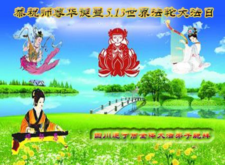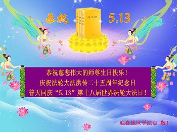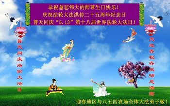 庆祝法轮大法洪传二十五周年纪念日! 普天同庆“5.13”第十八届世界法轮大法日! 迎春地区与八五四农场全体大法弟子恭祝慈悲伟大的师尊生日快乐!