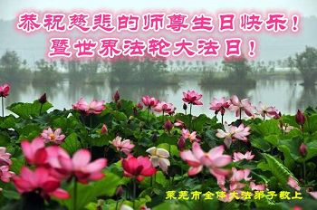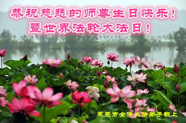 山东省莱芜市全体大法弟子恭祝慈悲师尊生日快乐!暨世界法轮大法日!