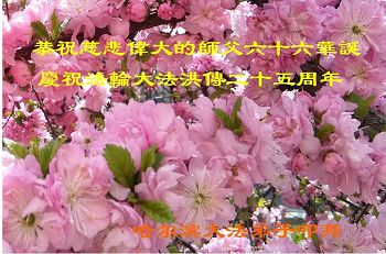 黑龙江省哈尔滨一中年大法弟子恭祝师尊生日快乐!
