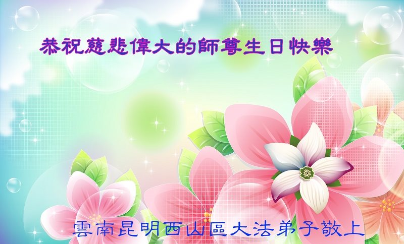 云南昆明西市区大法弟子恭祝慈悲伟大师尊生日快乐!