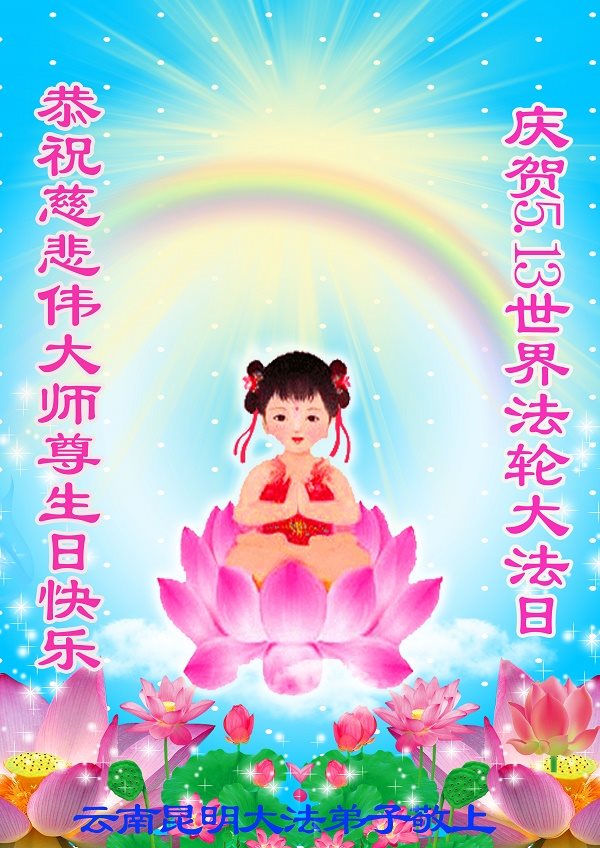 云南昆明大法弟子恭祝慈悲伟大的师尊生日快乐!同庆5.13世界法轮大法日!
