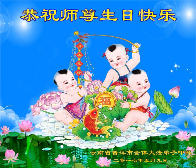云南省普洱市全体大法弟子恭祝师尊生日快乐!