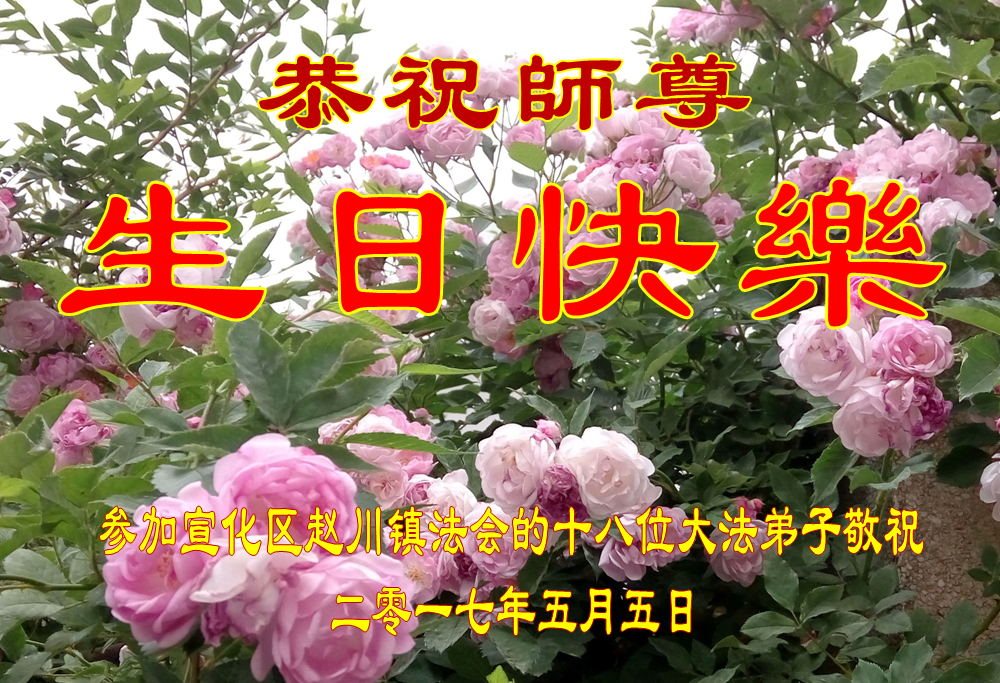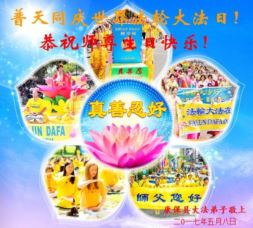 大法洪传世间二十五载,救度众生无数,法正人间在即。弟子们对师尊及大法的感恩难以言表。值此二零一七年五月十三日来临之际,河北省张家口市赤城县雕鹗镇大法弟子恭贺师尊华诞暨法轮大法日:师父您好,师父您辛苦了!
