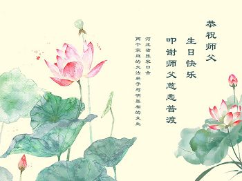 河北省张家口市两个家庭的大法弟子和得救的众生,在法轮大法日恭祝师父生日快乐!叩谢师父慈悲普度。