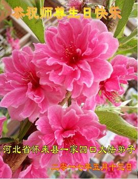 河北省张家口市怀来县大法弟子一家四口恭祝师尊生日快乐!