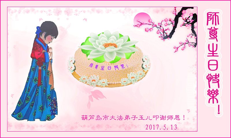 辽宁省葫芦岛市大法弟子玉儿恭祝慈悲伟大的师尊生日快乐!普天同庆世界法轮大法日!
