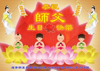 辽宁省葫芦岛市石油地区大法弟子恭祝慈悲伟大的师尊生日快乐!恭贺世界法轮大法日!