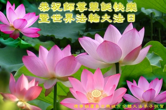 辽宁葫芦岛市兴城市全体大法弟子恭祝师尊华诞暨世界法轮大法日!