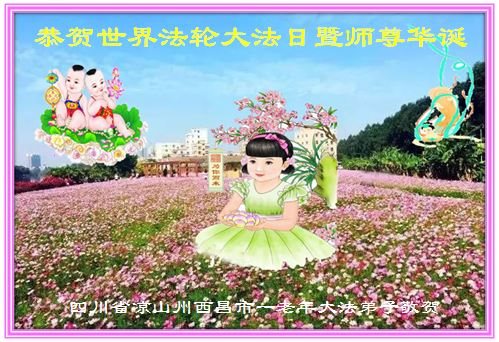 四川省凉山州西昌市一老年大法弟子恭贺世界法轮大法日!恭祝师尊生日快乐!