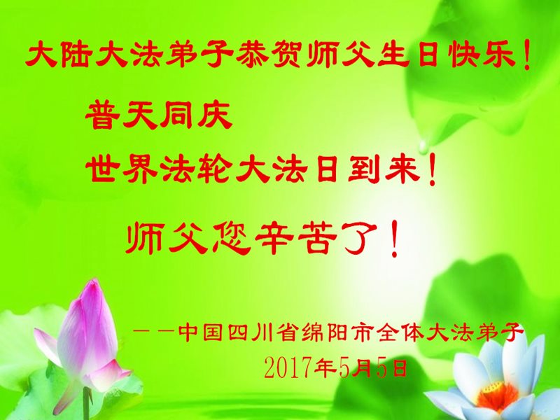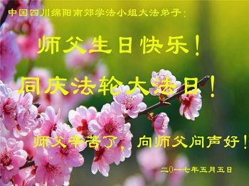 四川绵阳全体大法弟子恭祝师父生辰及法轮大法日!