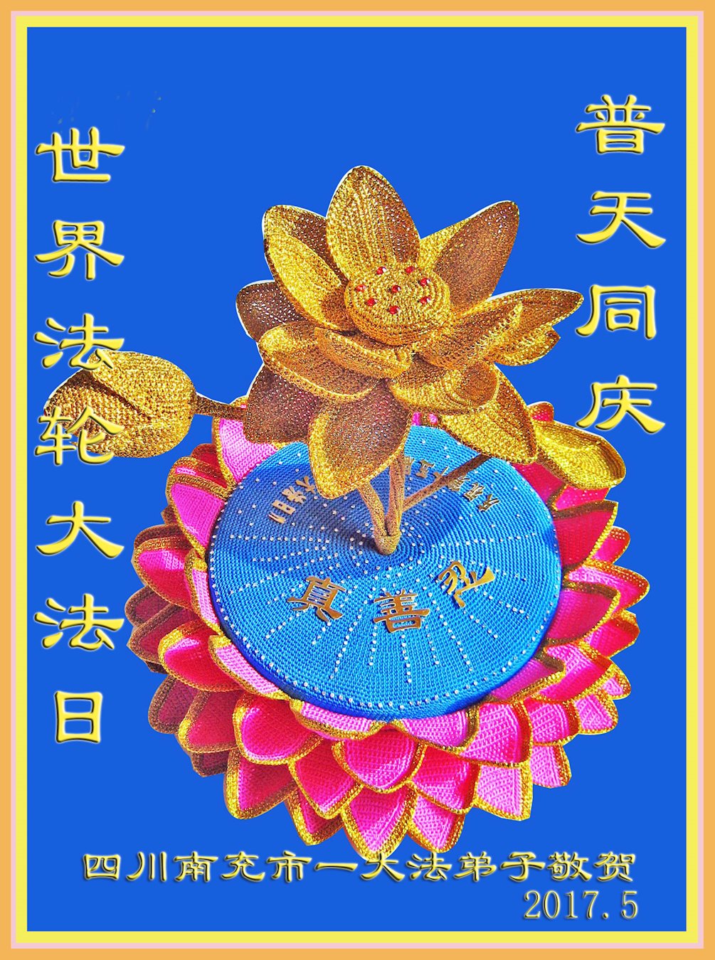 四川南充市一大法弟子庆贺世界法轮大法日!