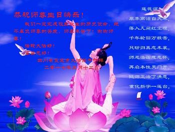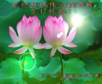 四川南充市一大法弟子恭祝慈悲伟大的师尊生日快乐!