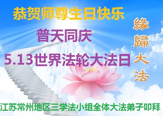 江苏省常州市一学法小组大法弟子恭祝师父生日快乐!恭贺世界法轮大法日!