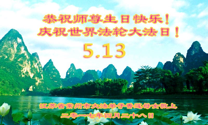 江苏省常州市俩大法弟子恭祝师尊生日快乐!庆祝5·13世界法轮大法日!