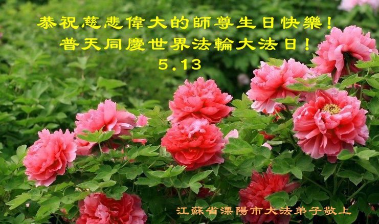 弟子恭祝师父生日快乐! 普天同祝同颂世界法轮大法日! 江苏省南京市栖霞区一老年大法弟子恭贺法轮大法日!