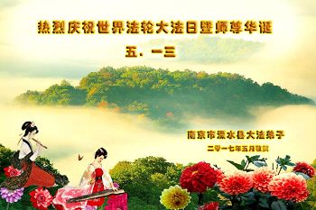 【明慧网二零一七年五月十一日】 江苏省南京市溧水县大法弟子热烈庆祝世界法轮大法日暨师尊华诞!