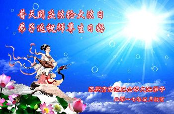 江苏省苏州市昆山市大法弟子恭贺世界法轮大法日!遥祝师尊生日快乐!