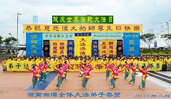 湖南大法弟子和全家人恭祝慈悲伟大的师尊生日快乐!恭贺”五一三世界法轮大法日”!庆祝法轮大法洪传二十五周年!