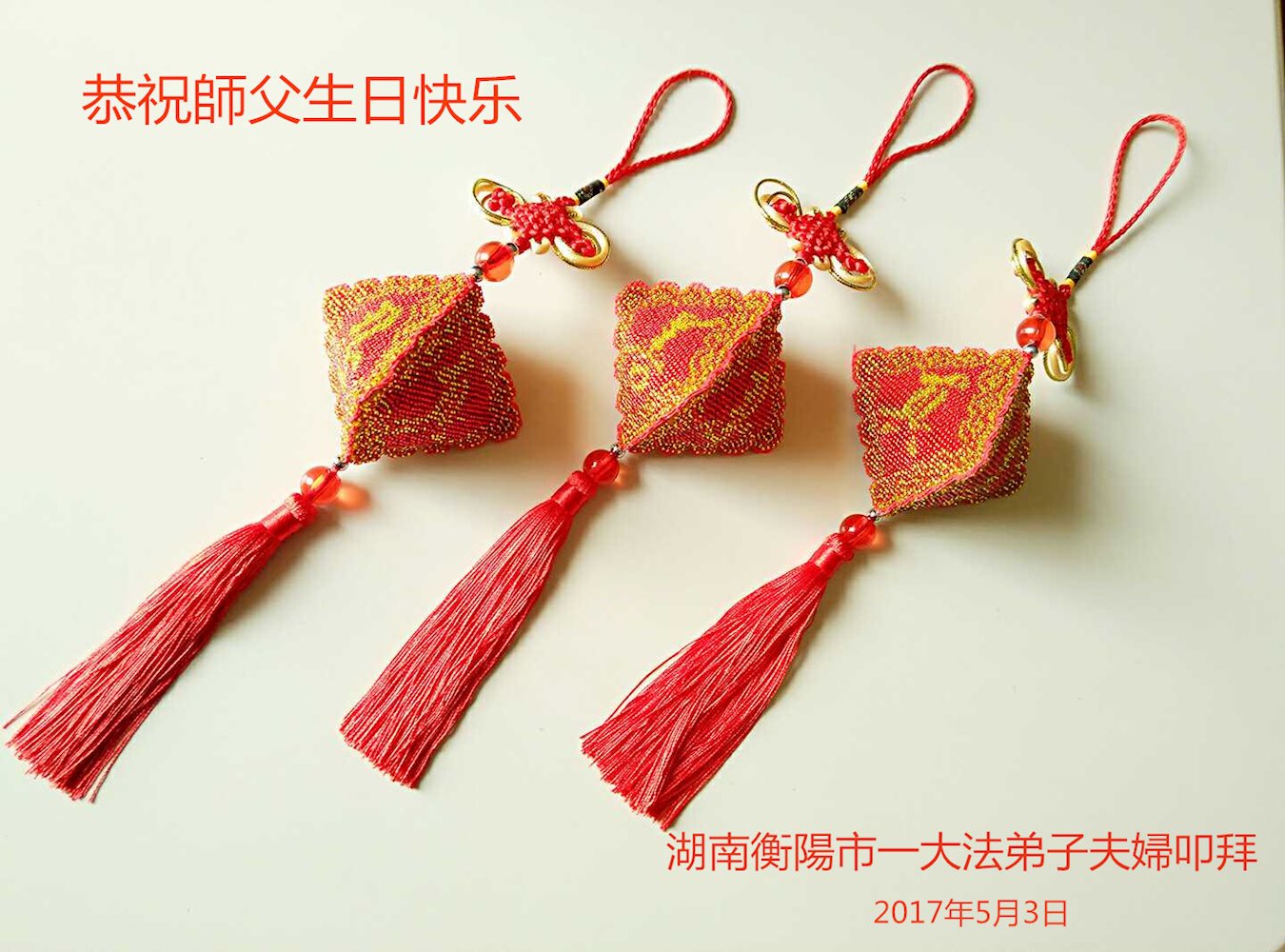 【明慧网二零一七年五月十一日】 湖南省株洲市攸县一大法弟子及家属恭贺法轮大法日!