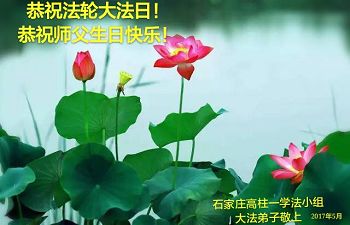 河北石家庄市两个学法小组庆祝世界法轮大法日,恭祝师尊生日快乐! 河北石家庄被非法迫害的大法弟子恭祝师尊华诞!