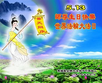 恭祝慈悲伟大的师父生日快乐! 谢谢师父 弟子敬贺 河北石家庄市高邑学法小组恭贺法轮大法日!