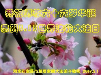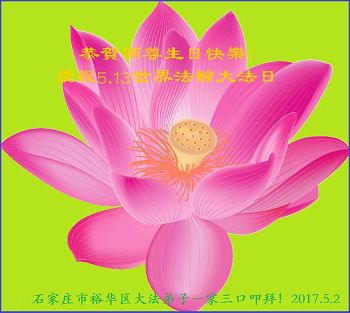 【明慧网二零一七年五月十一日】 河北省石家庄三口之家恭祝师尊生日快乐!庆祝法轮大法日!
