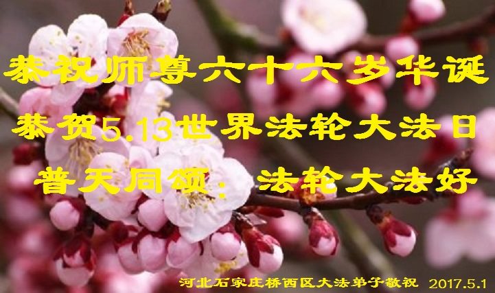 河北省石家庄市元氏县全体大法弟子恭祝师父生日快乐!普天同庆世界法轮大法日!师父您好!