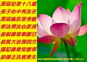 河北省石家庄市新华区一大法弟子恭祝师父生日快乐!