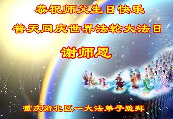 重庆渝北区一大法弟子恭祝师父生日快乐!恭祝法轮大法洪传世界二十五周年!