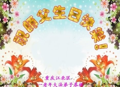 弟子叩拜师尊!恭祝慈悲伟大的师尊生日快乐! 弟子千言万语也无法感谢师尊的恩泽!唯有精進报师恩,功成圆满随师还! 重庆江北区一老年大法弟子 2017年4月27日 重庆市潼南区一学法小组大法弟子恭祝慈悲伟大的师尊生日快乐!