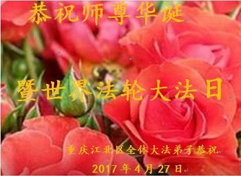【明慧网二零一七年五月十一日】 重庆江北区全体大法弟子恭祝慈悲伟大的师父生日快乐!恭祝师尊华诞暨世界法轮大法日!