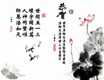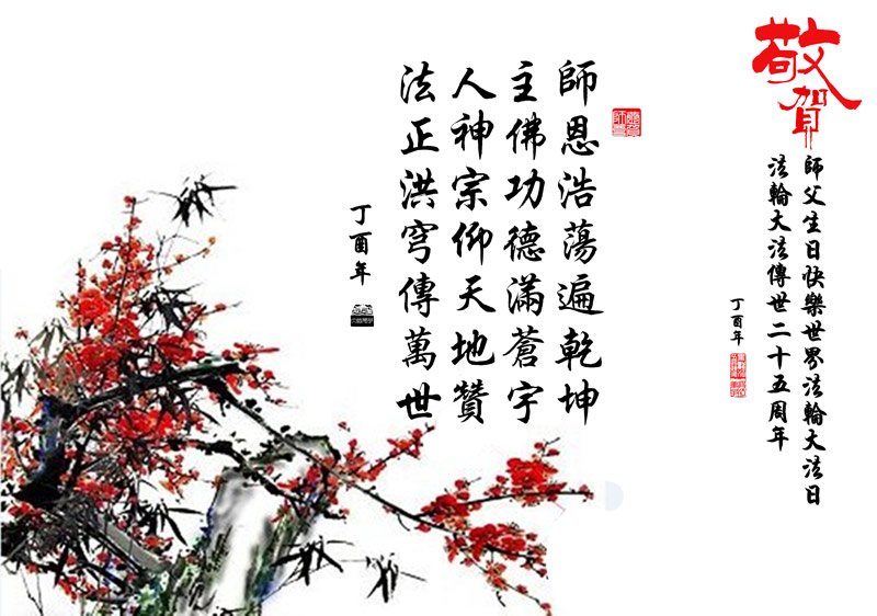 谢师尊洪恩浩荡 宇宙消渐,众生危难,师尊临凡。 中土辗转,光明璀璨,神创轩辕。 真善忍传,苍宇巨变,天地震撼。 旧势阻拦,制造谎言,地覆天翻。 天轮飞旋,净化星汉,师挽狂澜。 法徒志坚,真金火炼,重任在肩。 众生接缘,万法归案,师舵航船。 朵朵圣莲,出淤不染,天庭放绽。 傲雪梅兰,香飘穹天,春意盎然。 师尊华诞,叩首西盼,感恩无限。 东土神还,回归不远,誓约兑现。 黑龙江省绥化市一学法小组恭祝师尊生日快乐!
