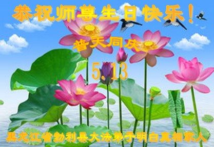 【明慧网二零一七年五月十一日】 黑龙江鹤岗市大法弟子真诚恭祝师尊生日快乐!