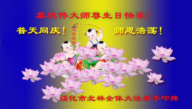 感谢师尊的慈悲苦度!弟子想念师尊!弟子一定要多学法,听师尊的话,向内找,做好三件事,跟师尊回家。 黑龙江省绥化市北林区全体大法弟子恭祝师尊生日快乐!