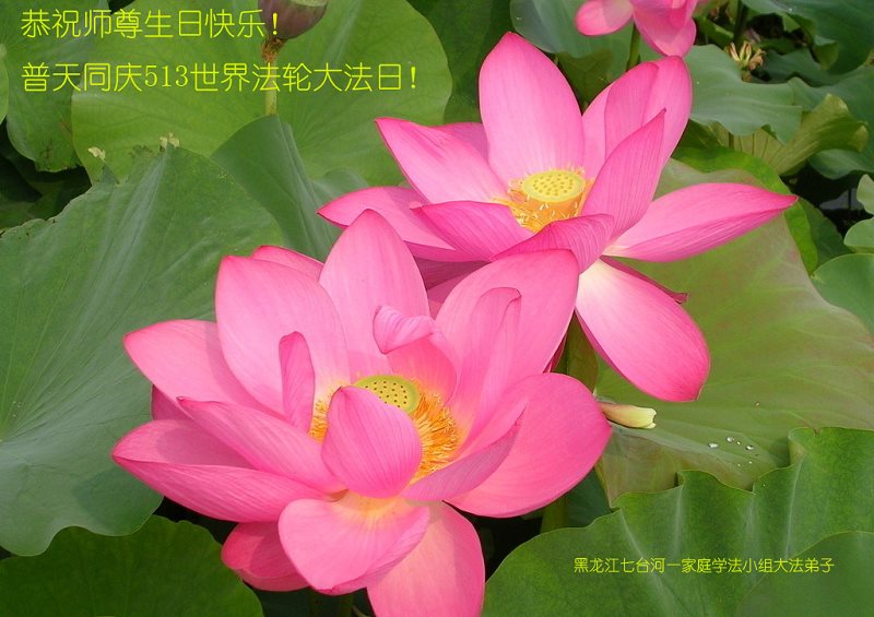 黑龙江七台河一家庭学法小组大法弟子恭祝师尊生日快乐!贺513世界法轮大法日!