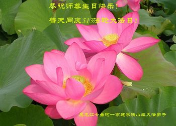 北京和平里地区老年大法弟子恭祝慈悲伟大的师尊生日快乐!恭贺法轮大法洪传二十五周年! 衷心希望众生明真相得救度! 航空工业四川省全体大法弟子恭祝伟大的师父生日快乐!