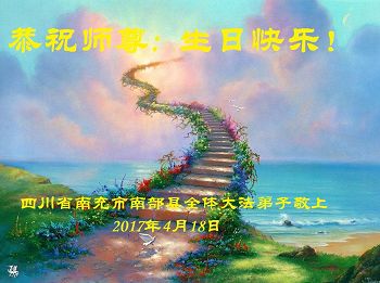 2017年4月17日 四川省宜宾市全体大法弟子恭祝伟大的师父生日快乐!