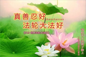 在5.13神圣的节日里,普天同庆第十八届世界法轮大法日。 我们四川省广元市旺苍县全体大法弟子深感师恩浩荡,万分感谢师尊慈悲苦度之恩,一定牢记师尊教诲,正念正行,共同精進,认真做好三件事,做合格的大法弟子! 辽宁省丹东一老年大法弟子恭贺法轮大法日!
