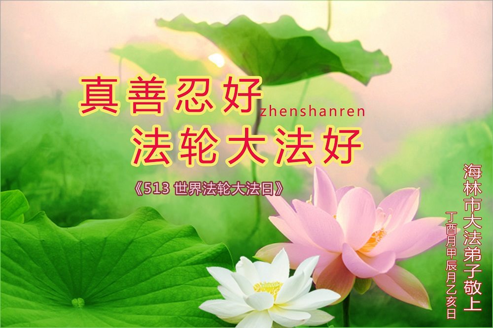 黑龙江省牡丹江市海林市大法弟子恭贺世界法轮大法日!