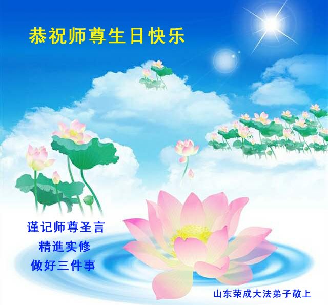 山东烟台招远市齐山镇全体大法弟子恭祝慈悲伟大的师尊生日快乐!