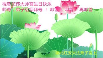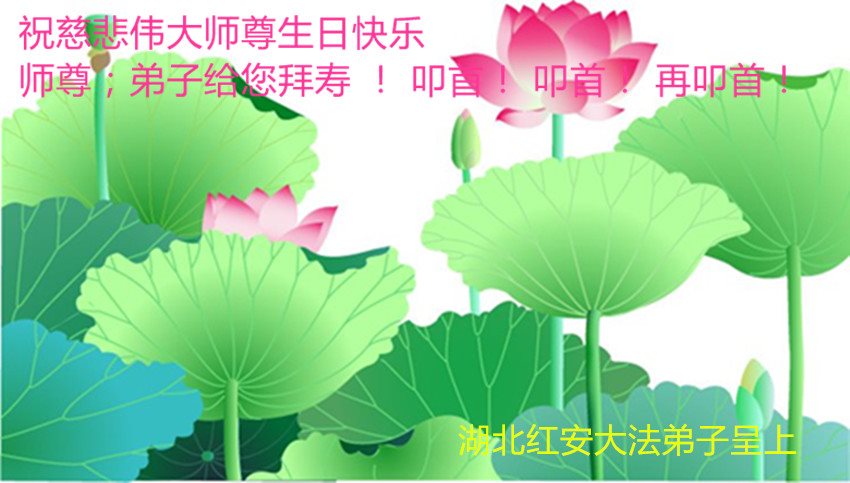 湖北红安大法弟子恭祝世界法轮大法日!恭祝慈悲伟大师尊生日快乐!