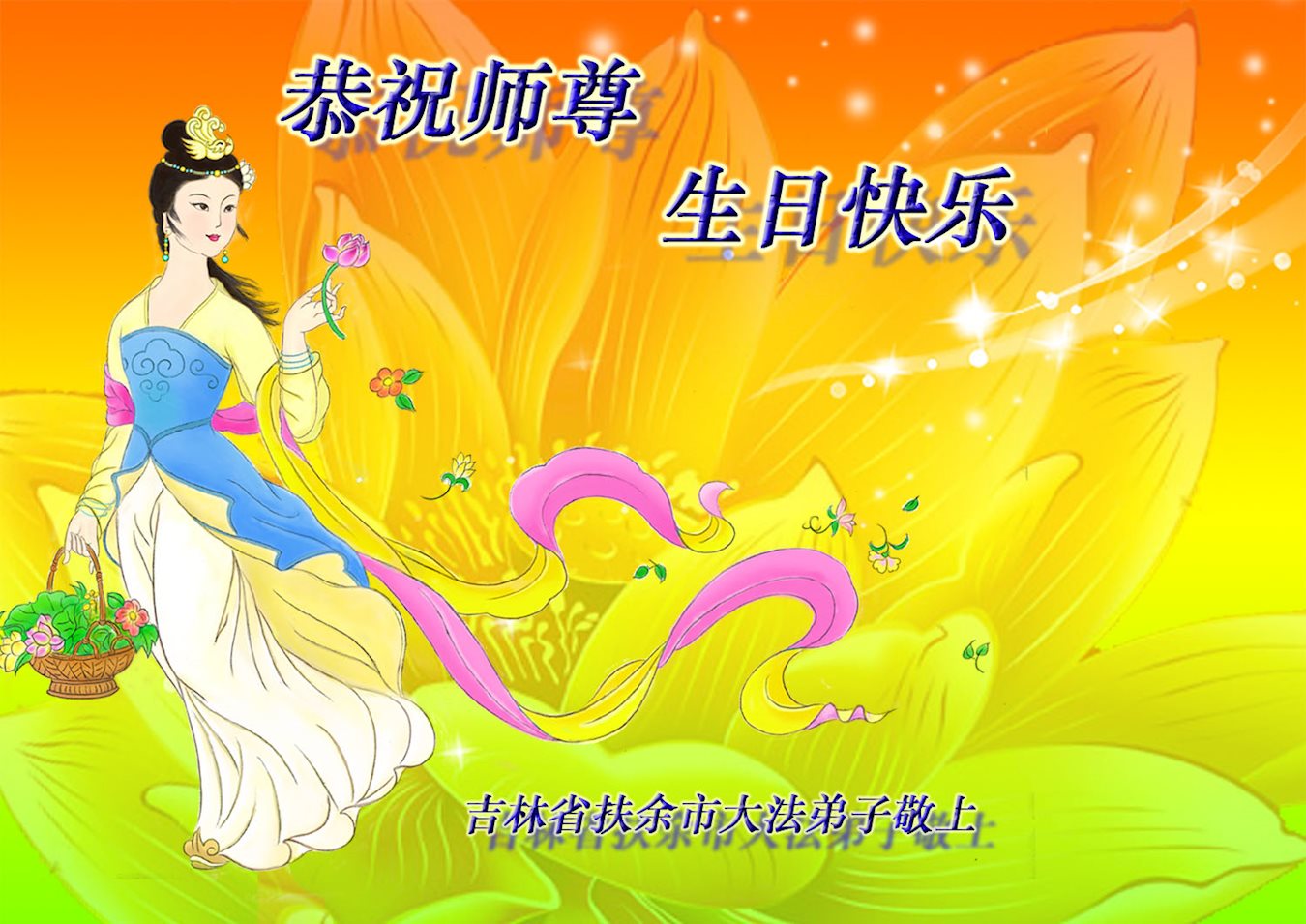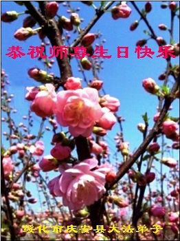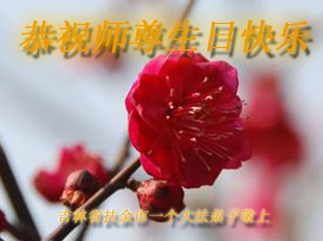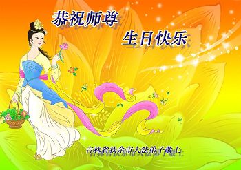 师尊您辛苦了!我们扶余市全体大法弟子形成整体,听师尊的话,共同精進,做好三件事,请师尊放心! 吉林省扶余市一个资料点的大法弟子恭祝师尊生日快乐!普天同庆世界法轮大法日!