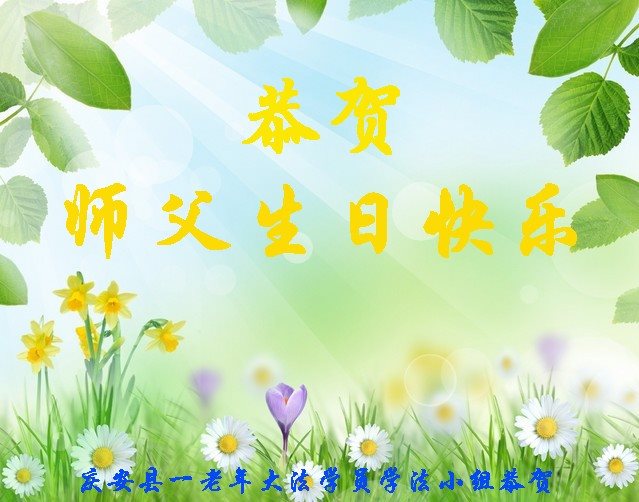 【明慧网二零一七年五月十一日】 黑龙江省绥化市庆安县一老年学法组恭祝世界法轮大法日!