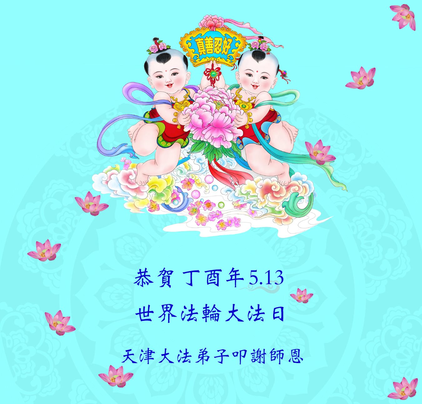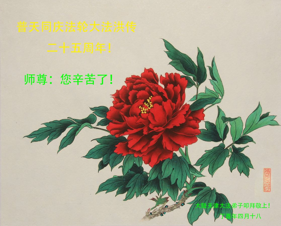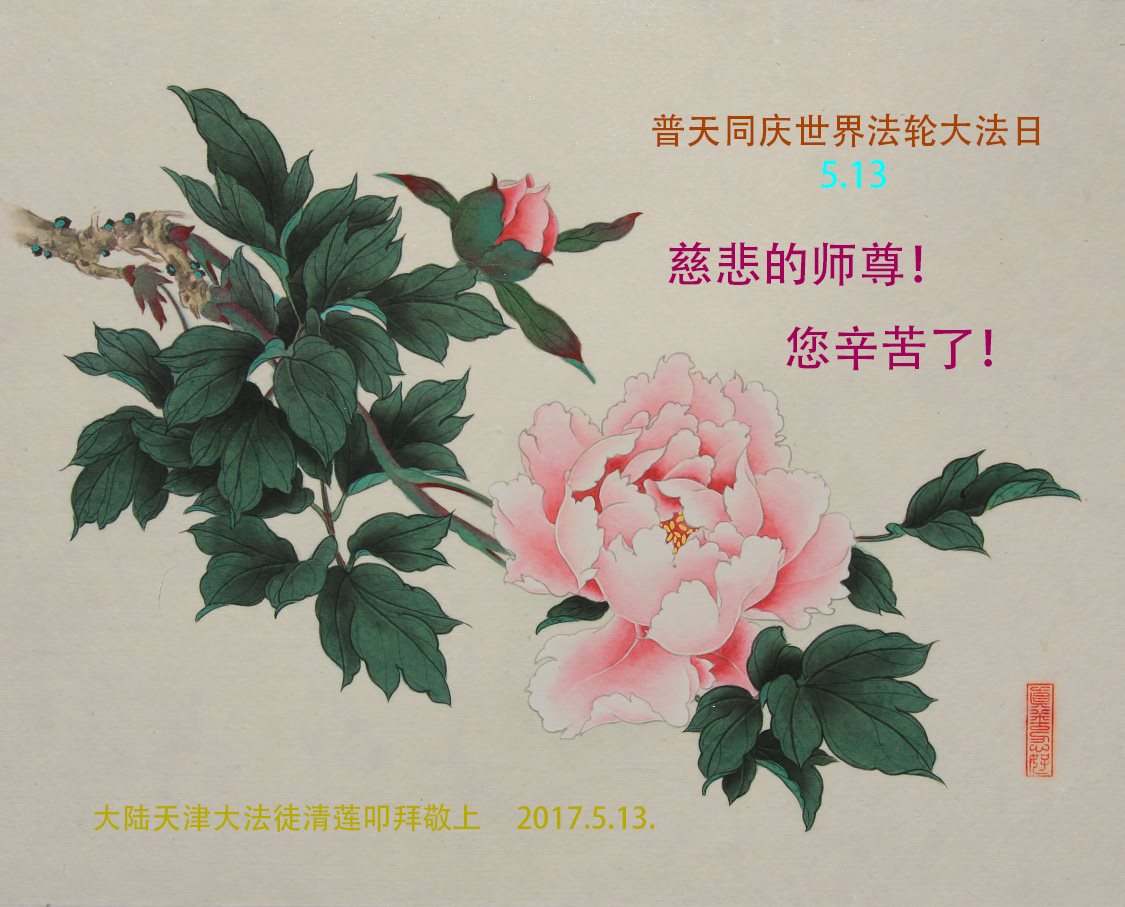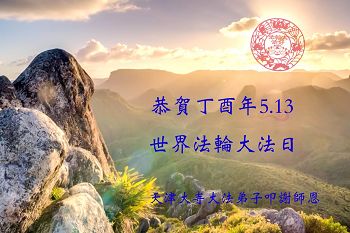 天津市大法弟子恭贺丁酉年5.13世界法轮大法日!叩谢师恩! 天津大寺地区大法弟子恭贺世界法轮大法日!