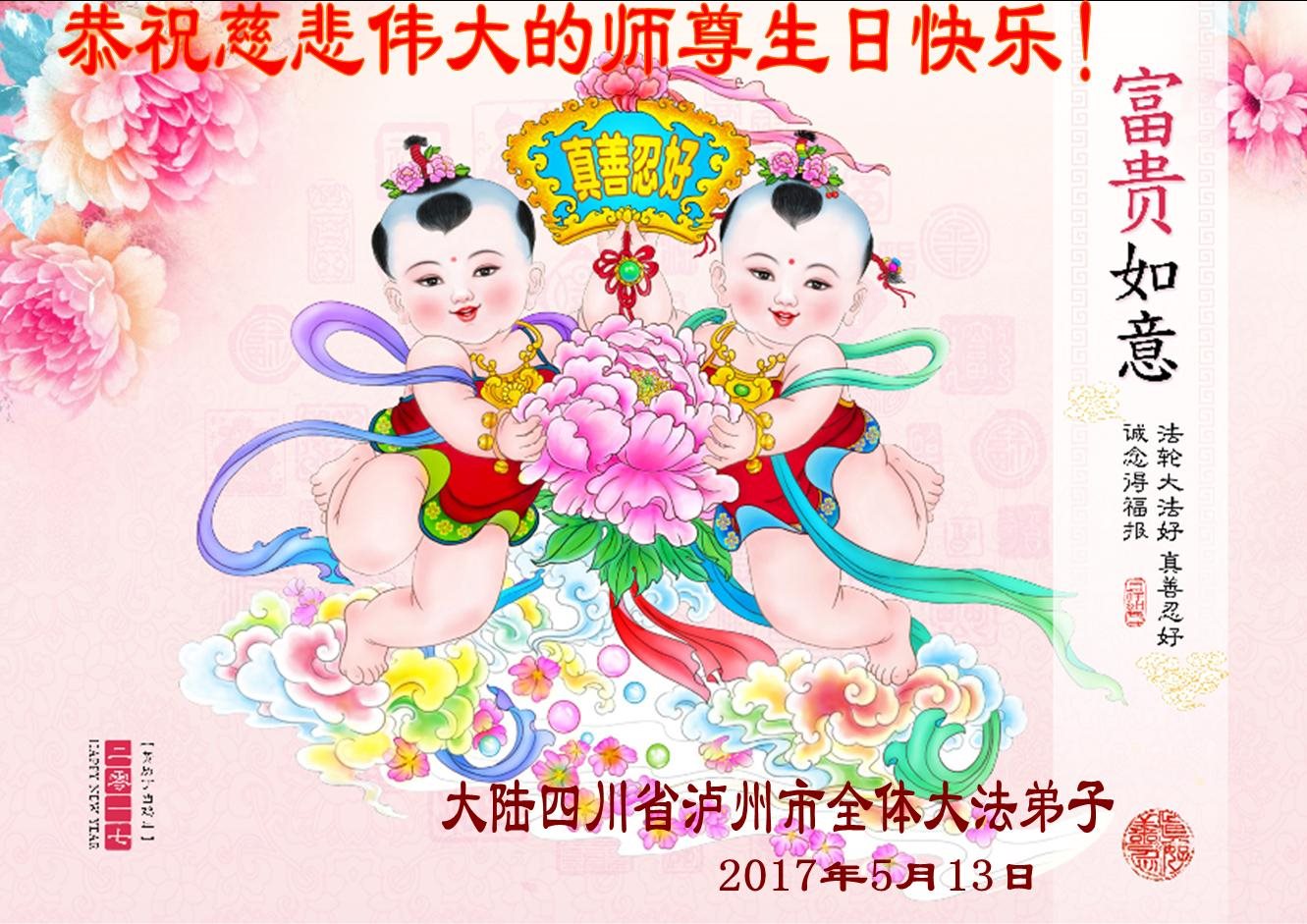 恭祝法轮大法洪传二十五周年! 四川泸州市全体大法弟子恭祝慈悲伟大的师尊生日快乐!